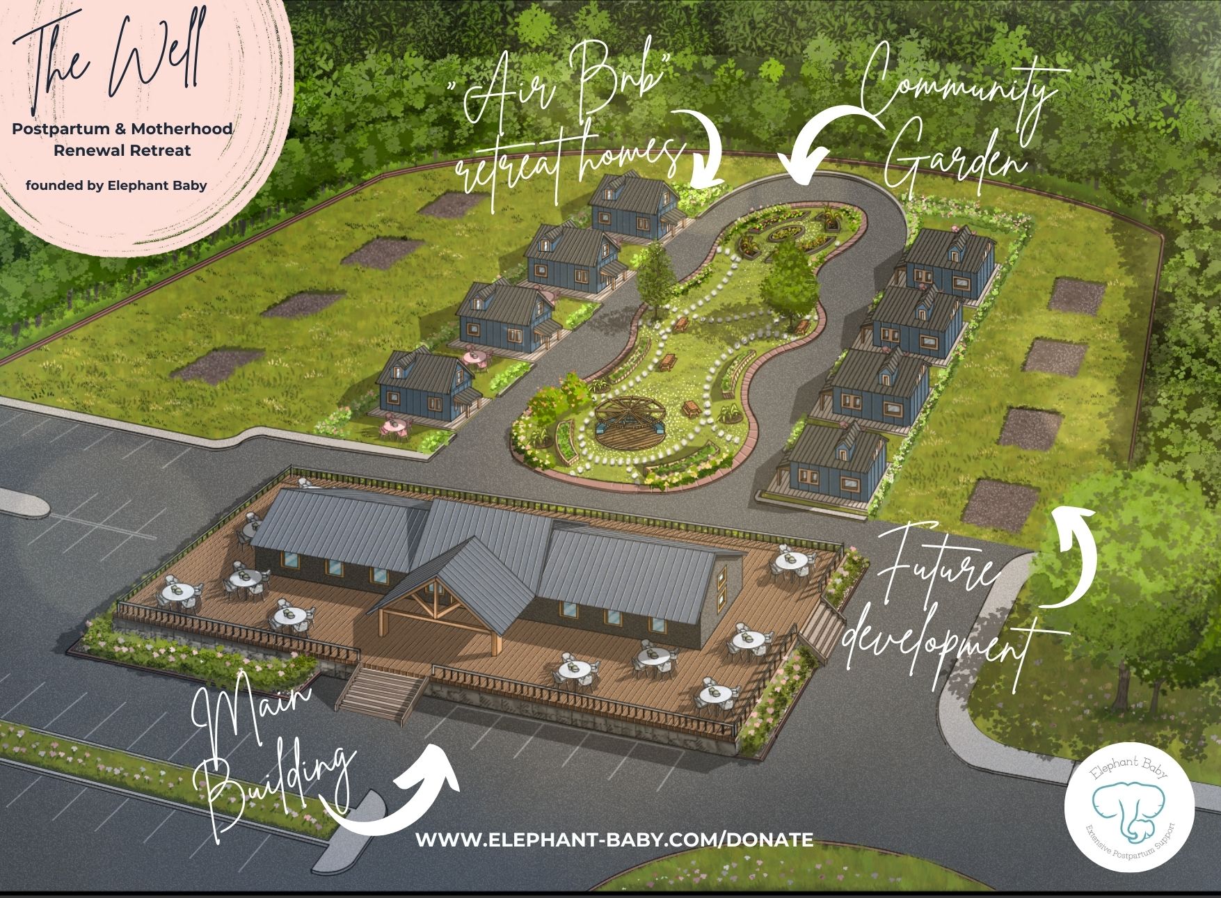 Elephant Baby envisions a world where every mother, no matter her background or stage in motherhood, has access to comprehensive postpartum care. The Well will be a place of healing, learning, and community—a haven where mothers can rejuvenate, connect, and grow.